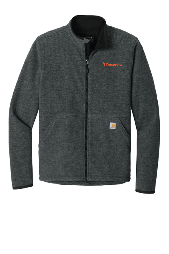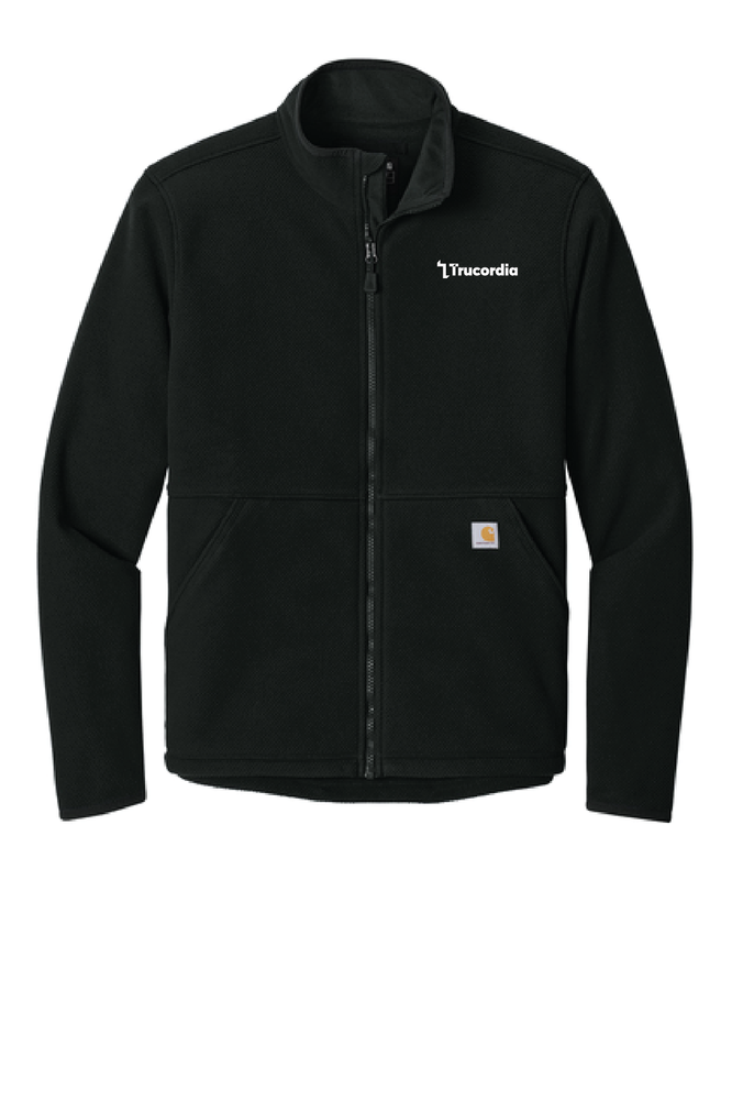 From jobsite to backyard barbeque, Carhartt Textured Fleece outerwear delivers easy-wearing warmth and everyday versatility.| 7.3-ounce, 100% polyester| Zip-through collar| Full-length center front zipper| Two lower front zippered pockets| Carhartt label sewn on left pocket| Elastic binding cuffs| Adjustable drop tail hem| Relaxed fit